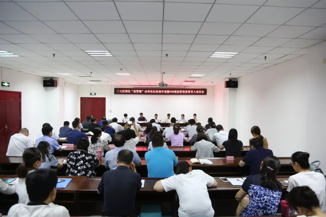 6月5日上午,二七区举行深化“放管服”改革优化营商环境暨OSM现场管理系统导入动员会。